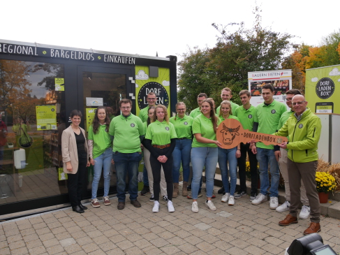 Die Eröffnung wird öffentlich sein, sie ist für Oktober geplant. Die Dorfladenbox ist ein moderner und ausschließlich regionaler Selbstbedienungsladen für Direktvermarkter und kleinstrukturierte Erzeuger. Die Kunden können alle Erzeugnisse der umliegenden Höfe kompakt in der Dorfladenbox erwerben und müssen nicht viele Kilometer von Hof zu Hof fahren. Dabei wird auf smarte technische Lösungen und einen hohen Automatisierungsgrad gesetzt. Neben der modernen Zutrittskontrolle und Diebstahlsicherung, erleichtert die Software die gesamte Verwaltung. Selbst die Nachbestückung erfolgt intelligent und automatisch. Durch den Zutritt per App haben die Dorfladenboxen bis zu 24 h täglich für einen bargeldlosen Einkauf geöffnet.