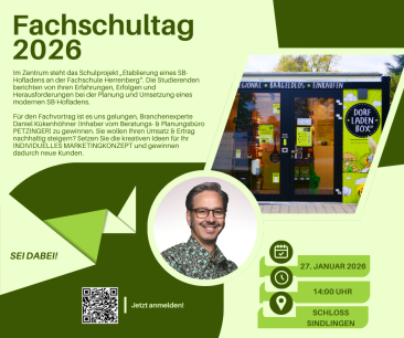 Der diesjährige Fachschultag steht unter dem Motto „SB-Hofläden im Aufschwung – Direktvermarktung neu gedacht“. Die Direktvermarktung befindet sich im Wandel, und Selbstbedienungshofläden gewinnen zunehmend an Bedeutung. Doch wie gelingt der Schritt von der ersten Idee hin zu einem wirtschaftlich erfolgreichen und praxisnahen Konzept?